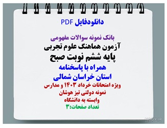 آزمون هماهنگ علوم تجربی پایه ششم نوبت صبح همراه با پاسخنامه استان خراسان شمالی